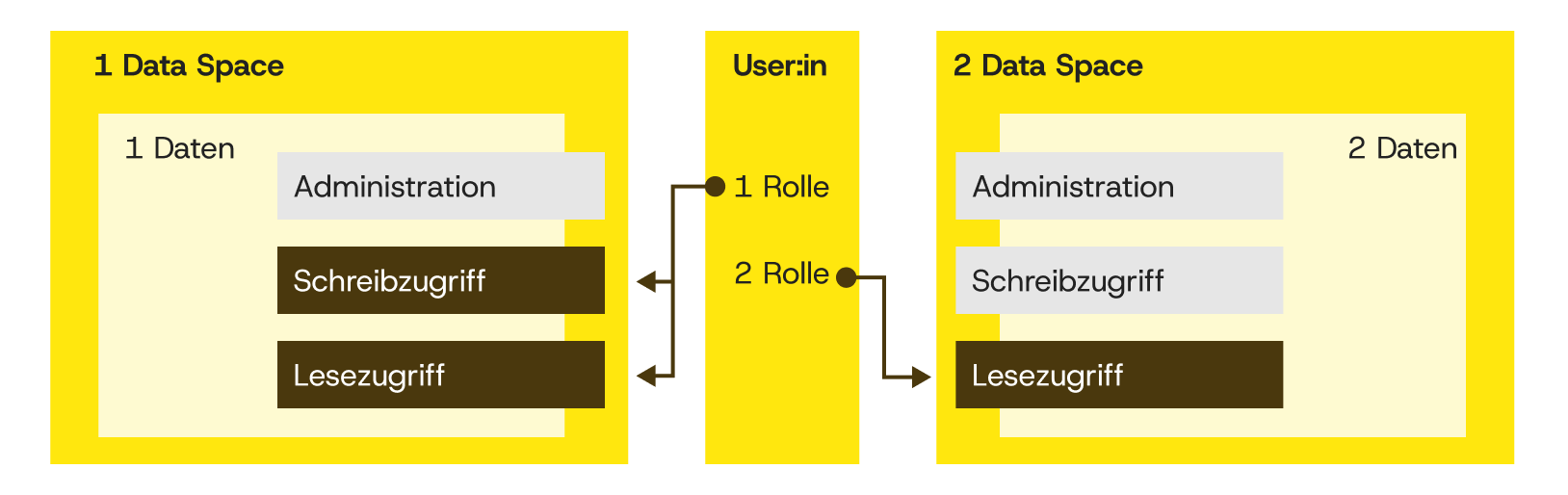 Im Data Hub Berlin gilt das Prinzip der geteilten Verantwortung. Fachabteilungen und andere Nutzende behalten die Hoheit über ihre eigenen Daten und entscheiden selbst, wer darauf zugreifen darf. Keycloak macht diese Entscheidungen technisch umsetzbar. Jede Person erhält definierte Dataspace-Zuweisungen und Rollen, die festlegen, welche Rechte sie hat.